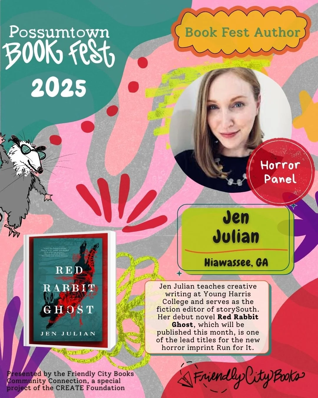 Jen Julian (Hiawassee, GA) teaches creative writing at Young Harris College and serves as the fiction editor of storySouth. Her debut novel Red Rabbit Ghost, which will be published this month, is one of the lead titles for the new horror imprint Run for It.