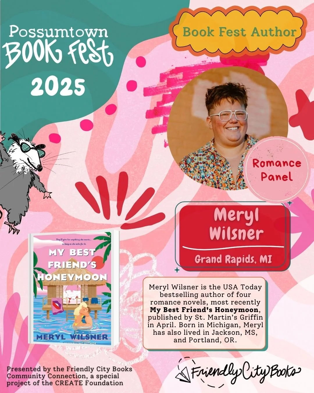 Meryl Wilsner (Grand Rapids, MI) is the USA Today bestselling author of four romance novels, most recently My Best Friend's Honeymoon, published by St. Martin’s Griffin in April. Born in Michigan, Meryl has also lived in Jackson, MS, and Portland, OR.