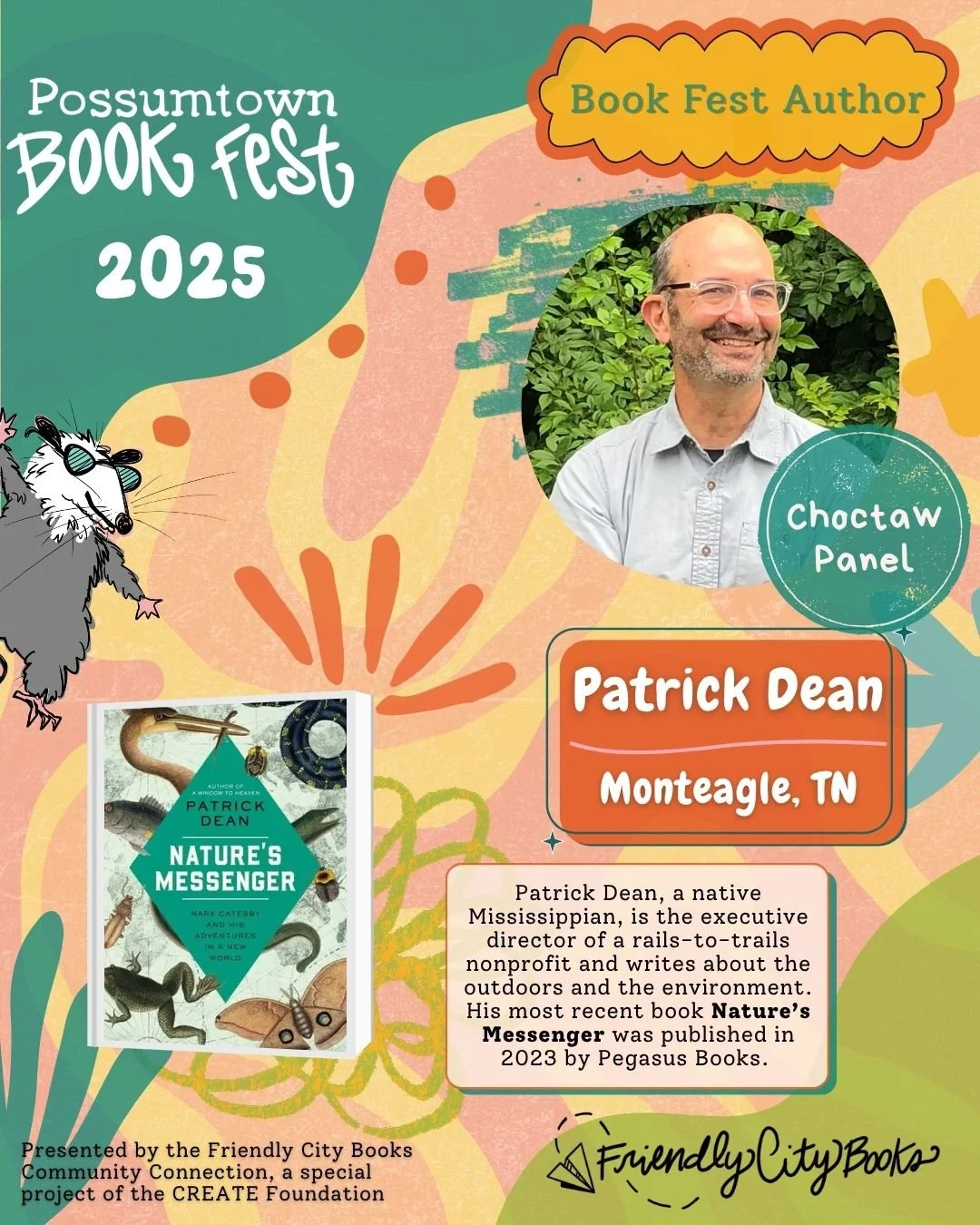 Patrick Dean (Monteagle, TN) a native Mississippian, is the executive director of a rails-to-trails nonprofit and write about the outdoors and the environment. His most recent book Nature’s Messenger was published in 2023 by Pegasus Books.