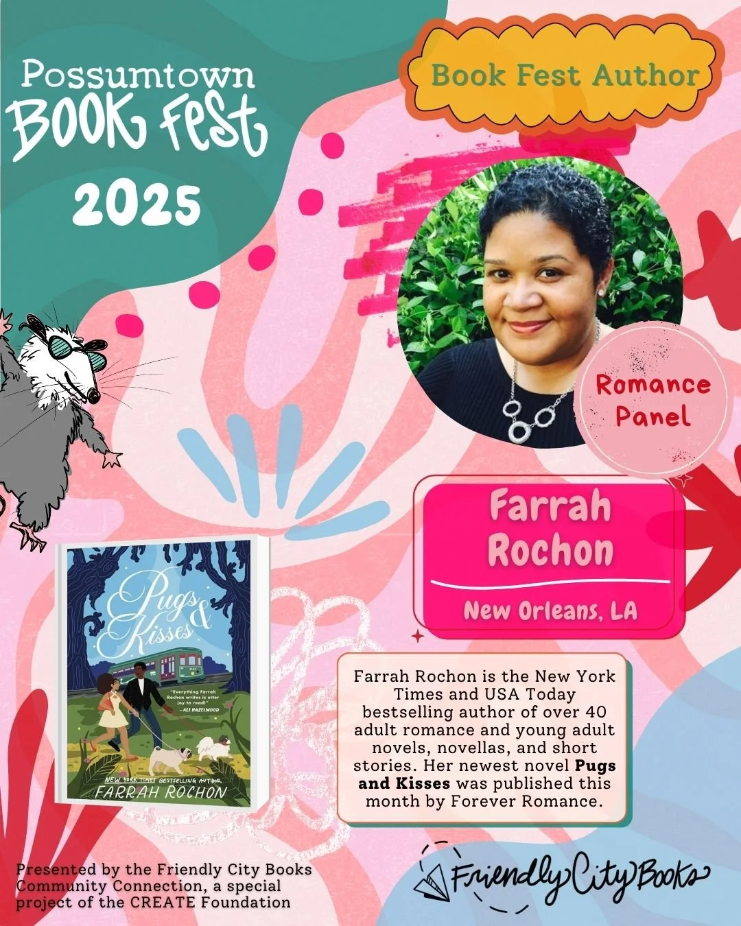 Farrah Rochon (New Orleans, LA) is the New York Times and USA Today bestselling author of over 40 adult romance and young adult novels, novellas, and short stories, including the popular Boyfriend Project series. Her newest novel Pugs and Kisses, a standalone follow-up to Pardon My Frenchie, was published this month by Forever Romance.