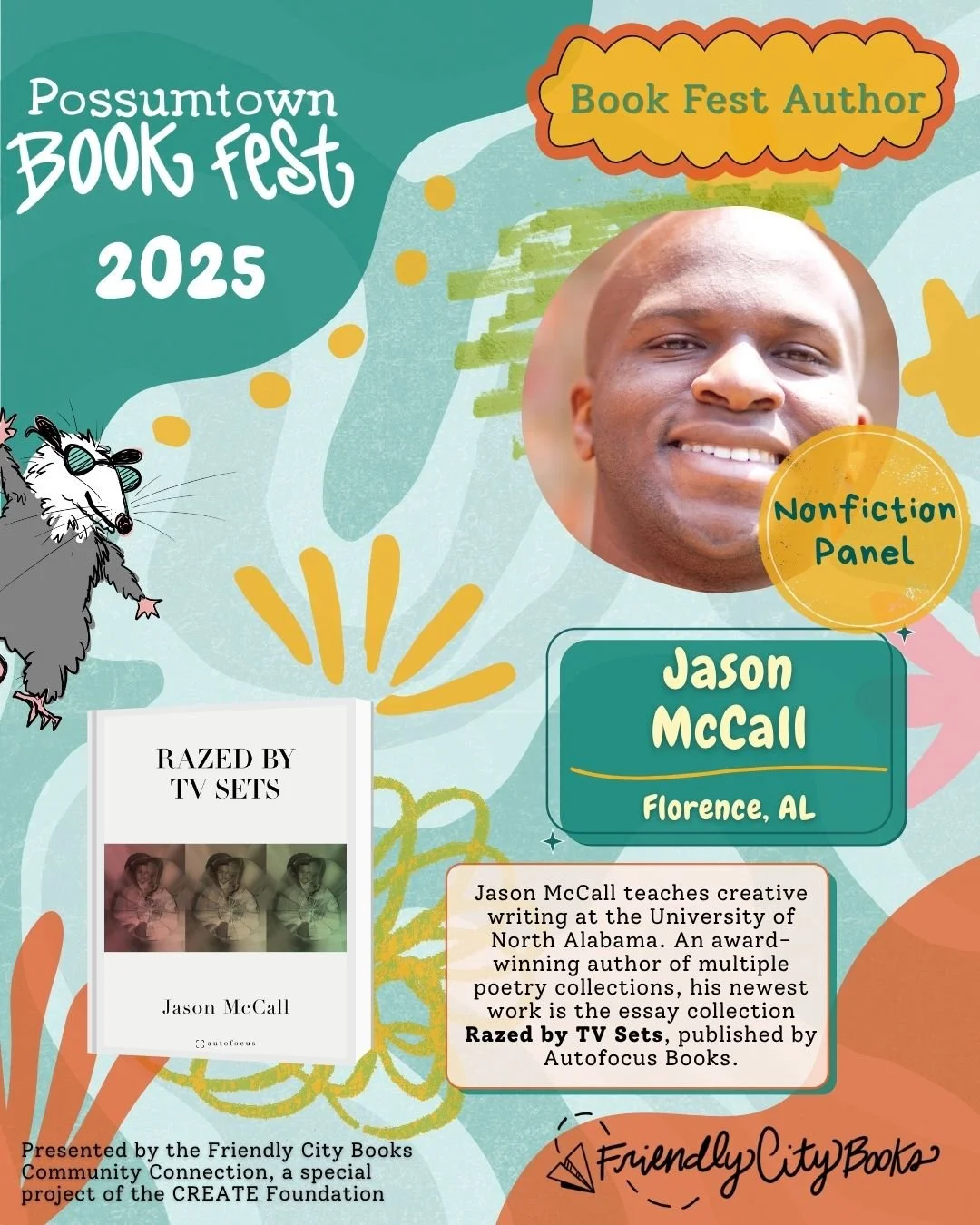 Jason McCall (Florence, AL) teaches creative writing at the University of North Alabama. An award-winning author of multiple poetry collections, his newest work is the essay collection Razed by TV Sets, published by Autofocus Books in 2024.