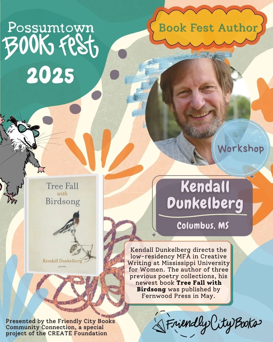 Kendall Dunkelberg (Columbus, MS) directs the low-residency MFA in Creative Writing at Mississippi University for Women. The author of three previous poetry collections, his newest book Tree Fall with Birdsong was published by Fernwood Press in May.