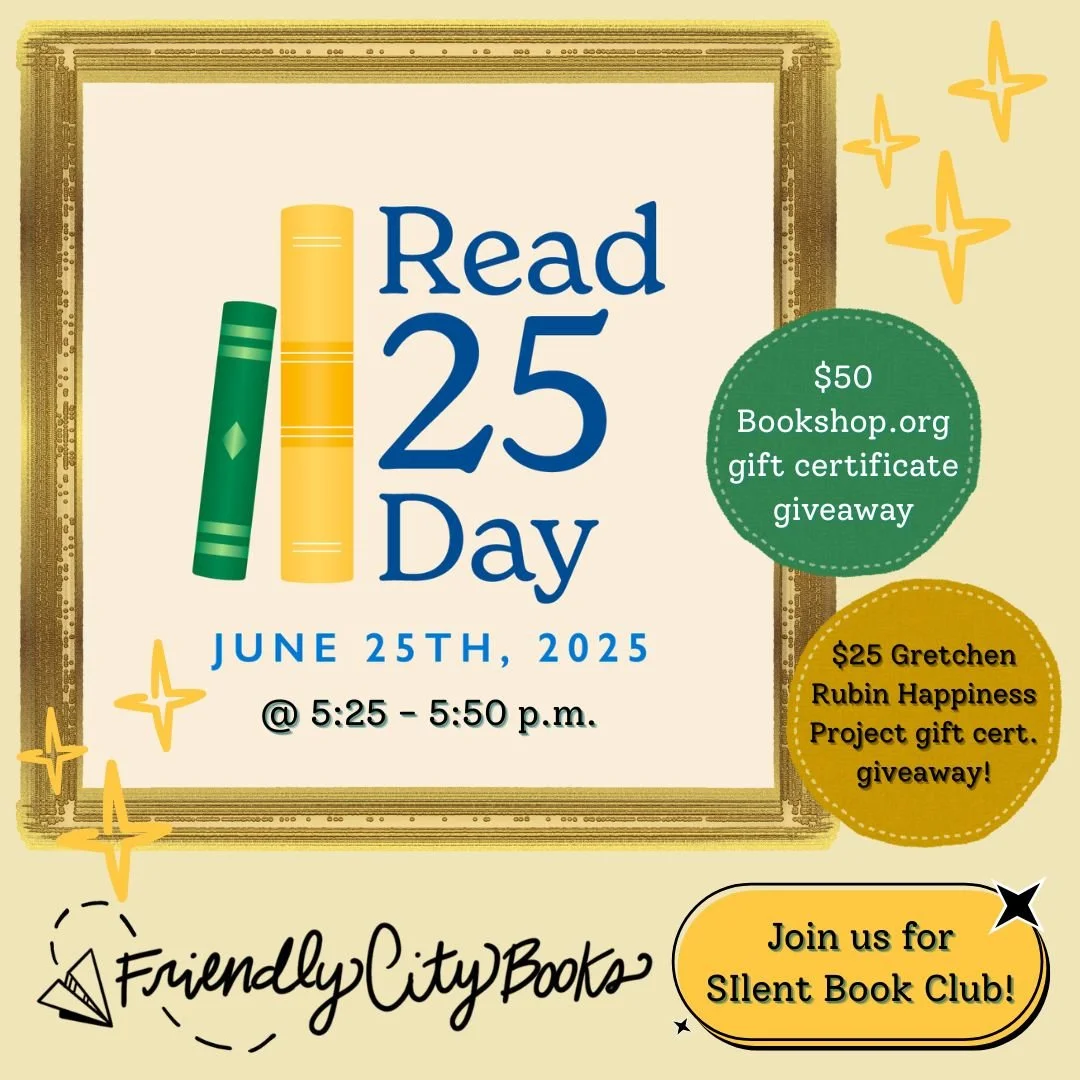 Join us at Friendly City Books as we join the Nationwide Read 25 event with a silent book club gathering from 5:25 p.m. - 5:50pm, with socializing before and after!